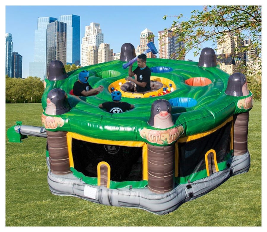 The Human Whak A Mole is a great game for all ages. There is one person in the middle with a soft/inflatable hammer that pops the other players who are around in a circle trying to grab as many balls as they can to win the game after a set of time. It is a wonderful fun time for any party, event, or gathering. It is a highly competitive game that children and even adults love.