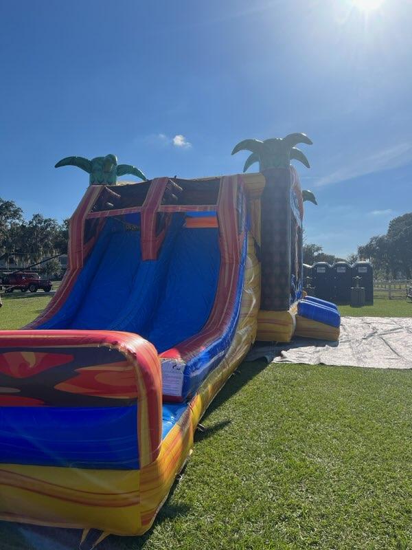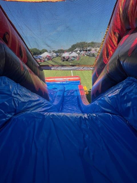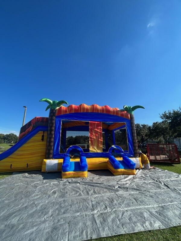 This is an excellent unit for huge events, parties, celebrations, and gatherings. It has a double lane slide. It can be used with or without water. It has so much space to bounce house inside and enjoy the unit. There is a climbing wall for two to climb and slide down. The two entrances in the front allows for two people to enjoy going in together to have fun for hours. It is definitely an EPIC unit for any occasion. When the bounce house is being used with the pool, the riders will splash down into a refreshing pool of water.