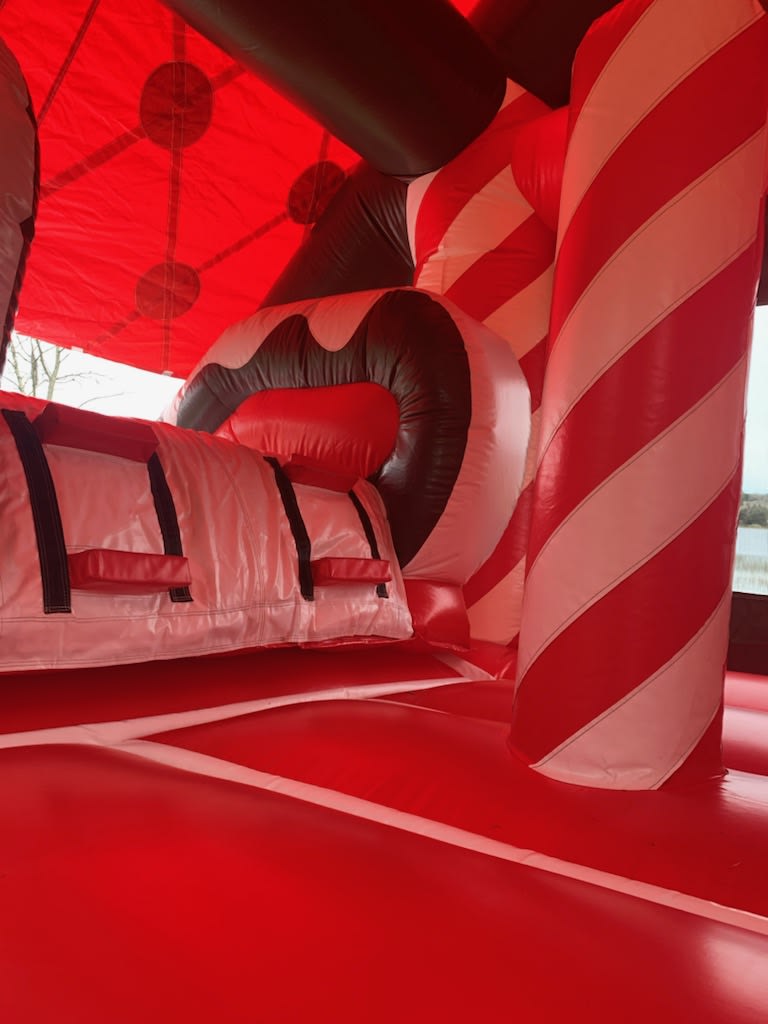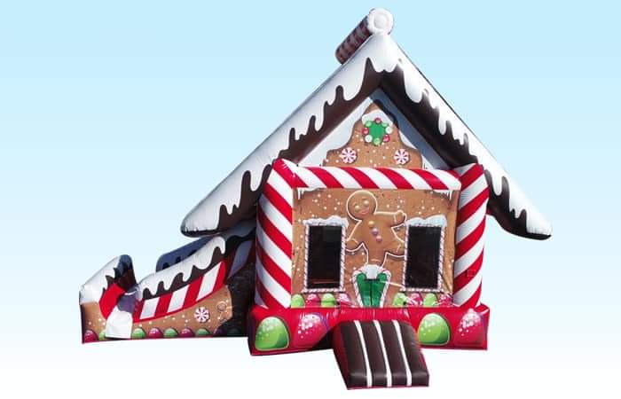 Enjoy the holidays with this great unit. You are jumping inside a Gingerbread house with a climbing wall and slide. It is tons of fun for any party, event, or gathering.