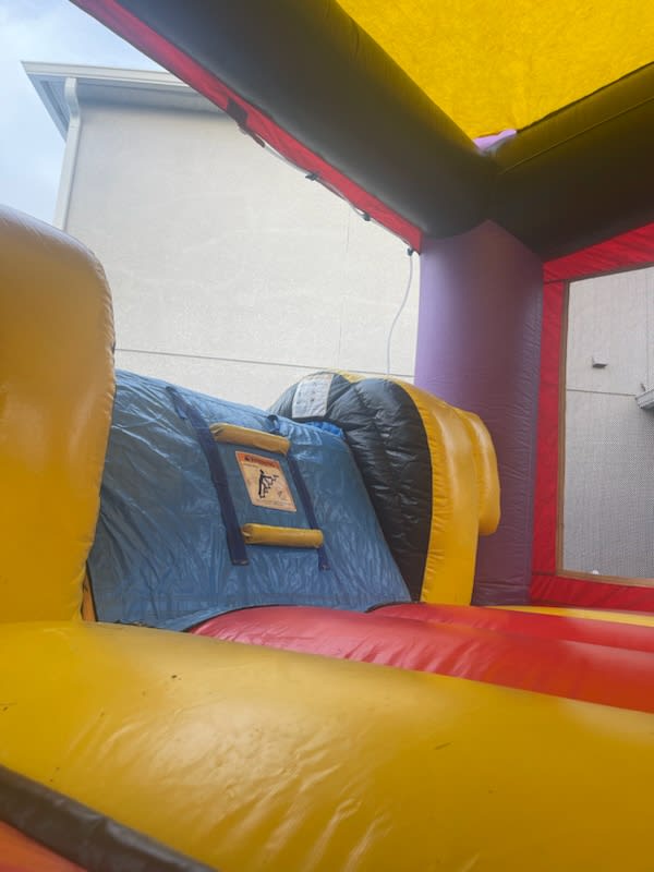 Excellent unit to let the children's imagination run wild. They can enjoy jumping or playing with the basketball hoop inside. There is a climbing wall and slide for extra fun. When you use this bounce house with slide with water, the riders will slip down into a pool to be refreshed by the water collected at the end.