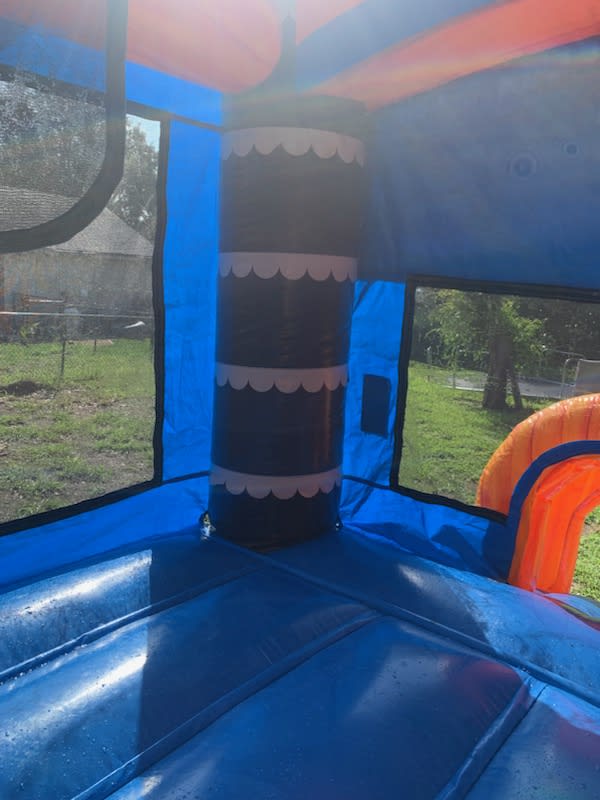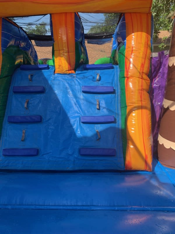 This is a great unit for any party, event, or gathering. This unit has a jumping area with a climbing wall and double lane slide. Sliders will slide down into a splashing landing area that will get them wet from the refreshing water waiting from them at the end. It can be used without water.
