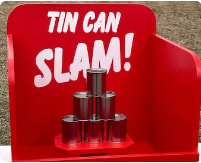 See how good you are at throwing and knocking down the tin cans at the Tin Can Slam. This is a great game for any party, event, carnival, or celebration. Definitely an awesome game for all ages.