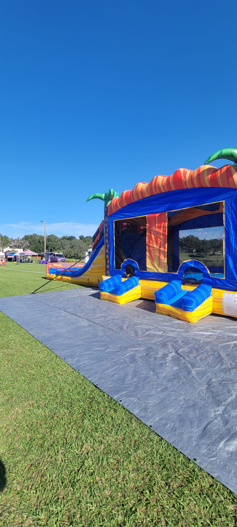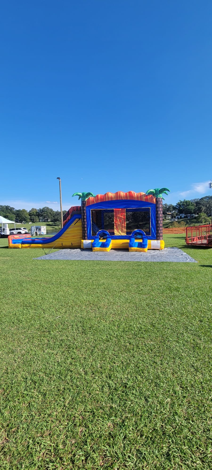 This is an excellent unit for huge events, parties, celebrations, and gatherings. It has a double lane slide. It can be used with or without water. It has so much space to bounce house inside and enjoy the unit. There is a climbing wall for two to climb and slide down. The two entrances in the front allows for two people to enjoy going in together to have fun for hours. It is definitely an EPIC unit for any occasion. When the bounce house is being used with the pool, the riders will splash down into a refreshing pool of water.