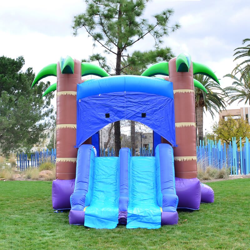 The Fiji Falls Combo bounce house is a great unit for children who want to bounce house and then race down the slide. This unit can be used with or without water. When you are using it with water (with the pool attached), the riders will splash into a refreshing pool of water.