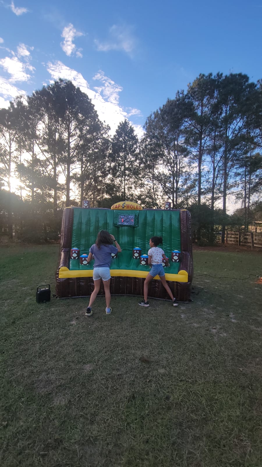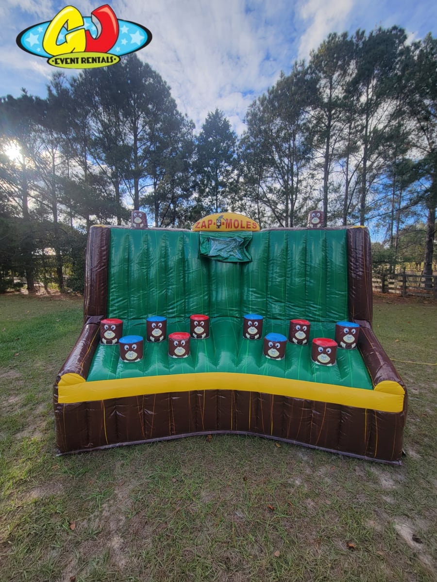 Zap-D-Mole is an enjoyable, interactive inflatable for all events and ages. It is a great game for any event, party, or occasion. This game takes inflatables to another level. This two-player game is fun and easy to use. The interactive inflatable has pop-up moles that light-up according to the one that you have to 'zap.' Keep score of who can zap the most moles. The way players play is by tapping the top of the moles and the score board will keep score for you.