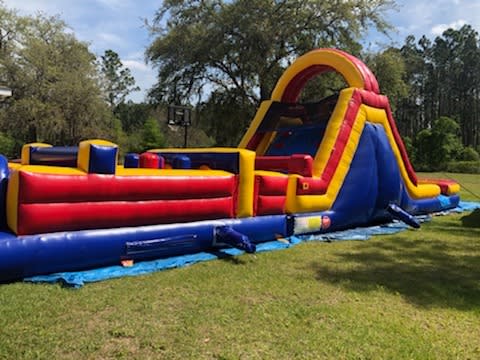 This obstacle course is a great unit for all ages. You can race another people through the tunnels and through pop ups to climb over a wall to slide down.