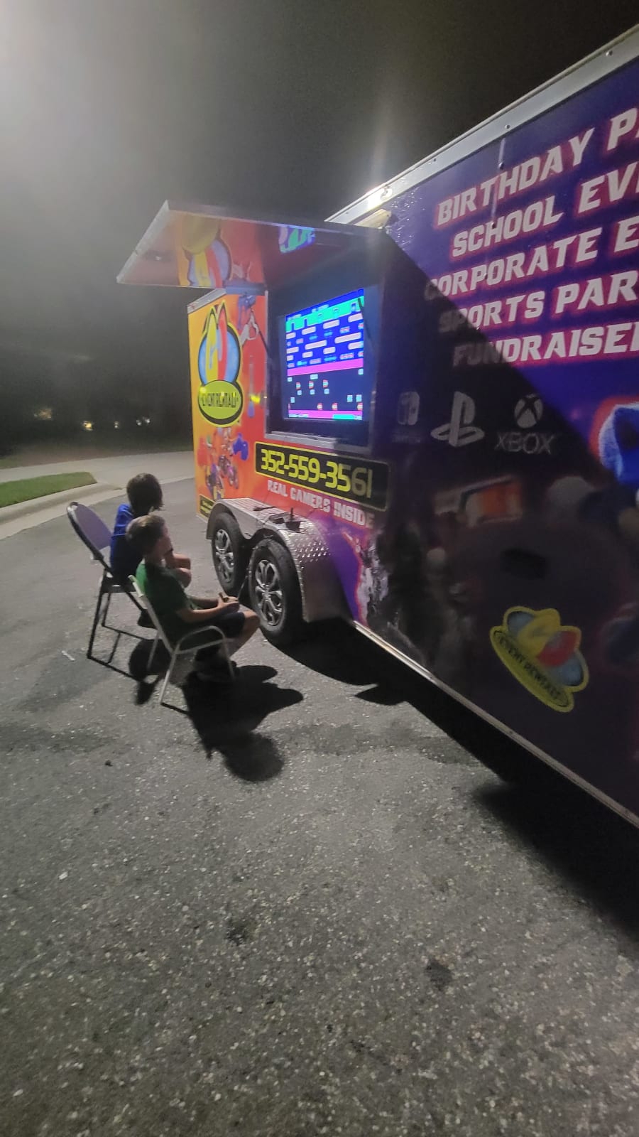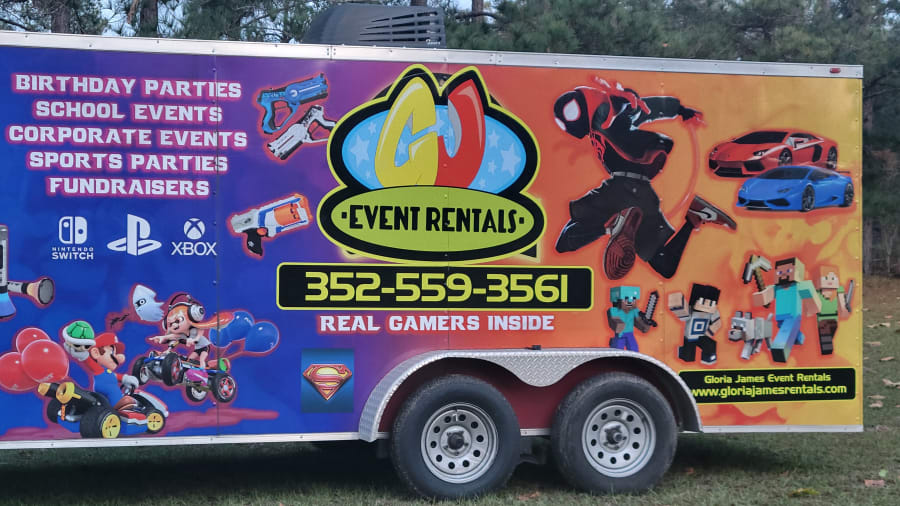 Gloria James Event Rentals Game Trailer is a great way to entertain your guests. The trailer has six televisions. Each television has a game system you can play on. There is Playstation 4, Playstation 5, Xbox 1, Xbox Series X, Atari, and Nintendo Switch. It is a great entertainment for all ages to play. There are so many different games to play multiple players. It has A/C and Heating in the game trailer so it is great for any time of the year.