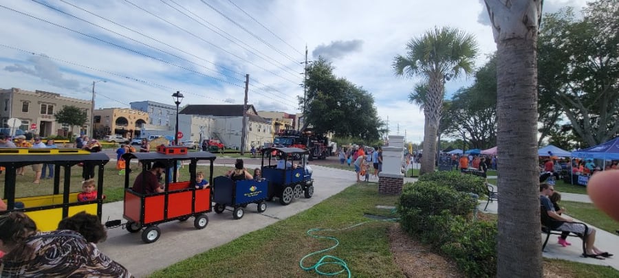 The Trackless Train is a great fun item to add to any party, event, or gathering. It is $250 for the first hour and $150 each additional hour after the first hour. It does come with a driver and attendant. Call us at 352-559-3561 to ask about availability and to book it.