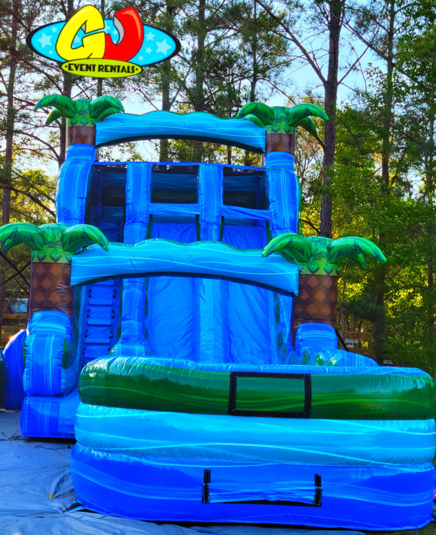 This 18ft double lane slide is a great slide to get you cool on the hot Florida days. This slide is a great size for those who want a slide with slip and slide, but do not have the space in their yard. The slide ends in a pool. It provides a great splash at the end of an adventurous slide